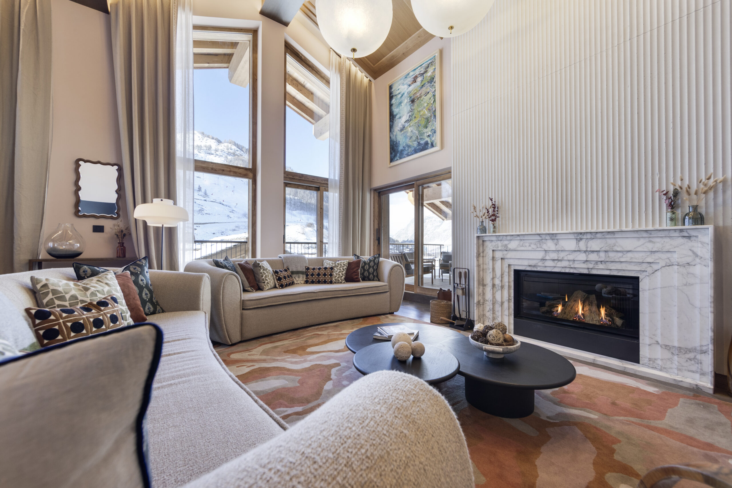 The upstairs living area is the most spectacular aspect to the building. The double height windows and ceilings provide a universal sense of space. The furniture is stylish and has been thoughtfully chosen for you to relax in luxury. Sitting in the lounge and watching the world ski past is one of the most enjoyable pastimes at Chalet La Tene.